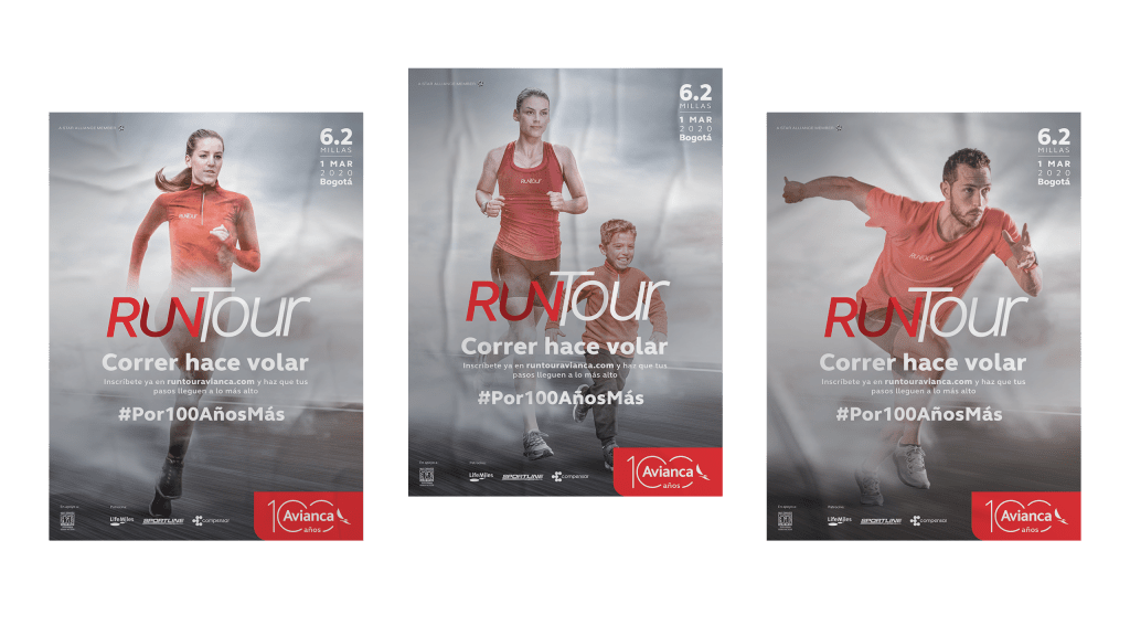 Año con año Avianca es el patrocinador principal de RUNTOUR, uno de los eventos deportivos más importantes en Bogotá. Se trata de una maratón que se realiza generalmente en el mes de marzo y que ayuda a las actividades de sano esparcimiento y el deporte en la ciudad capital de Colombia.